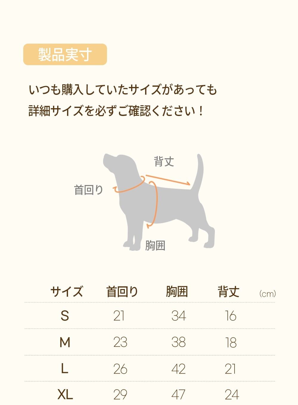 ※表記されたサイズは、製品を平らな床に置いて測った実寸サイズで、犬の体のサイズとは異なります。