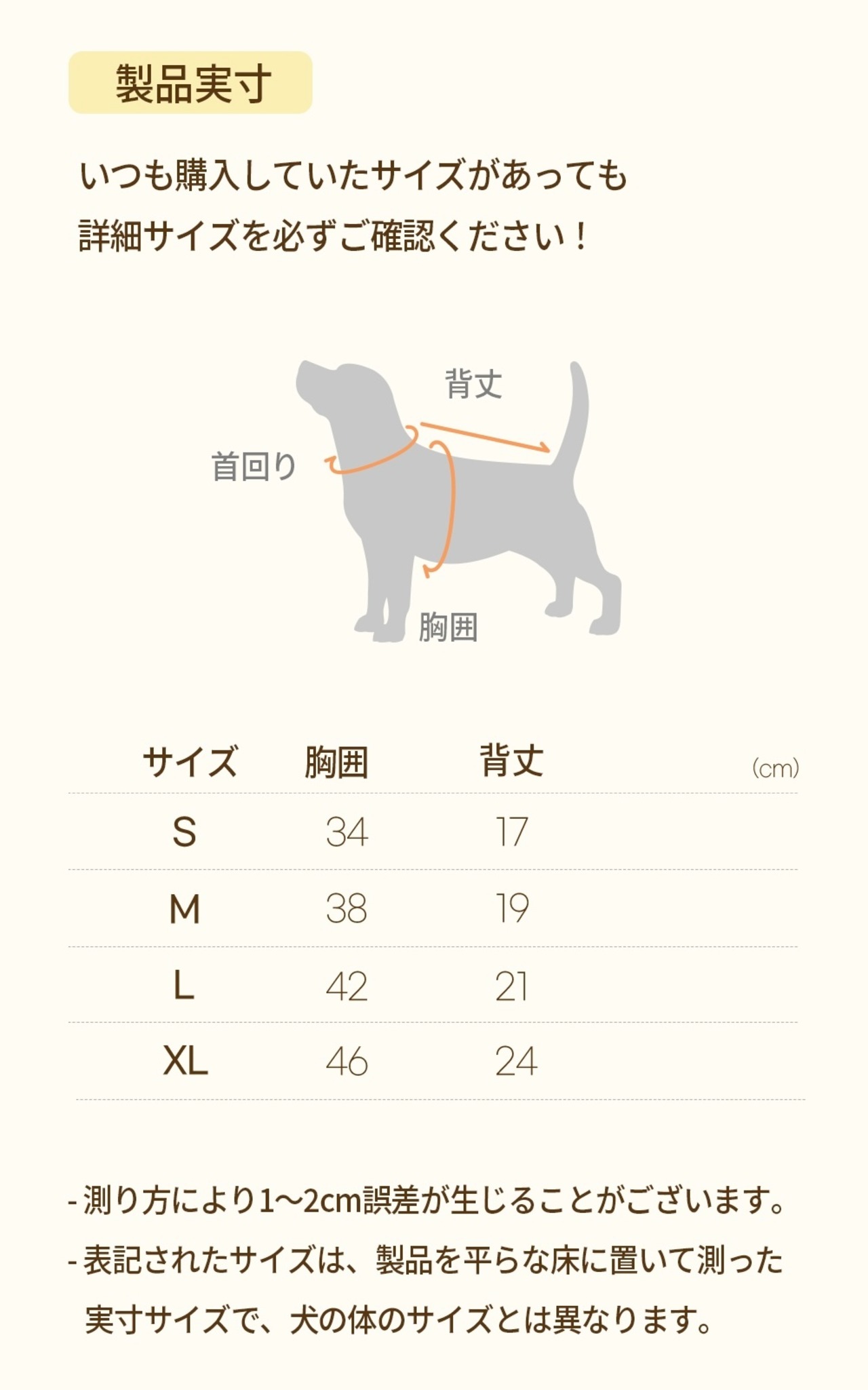 ※表記されたサイズは、製品を平らな床に置いて測った実寸サイズで、犬の体のサイズとは異なります。