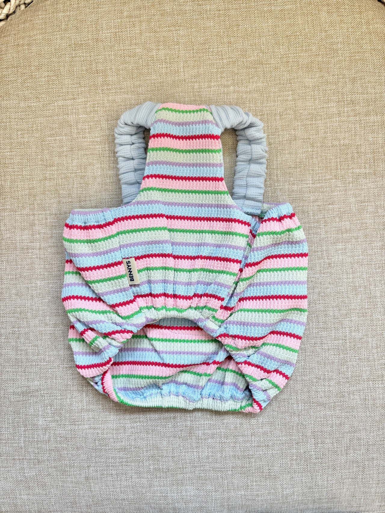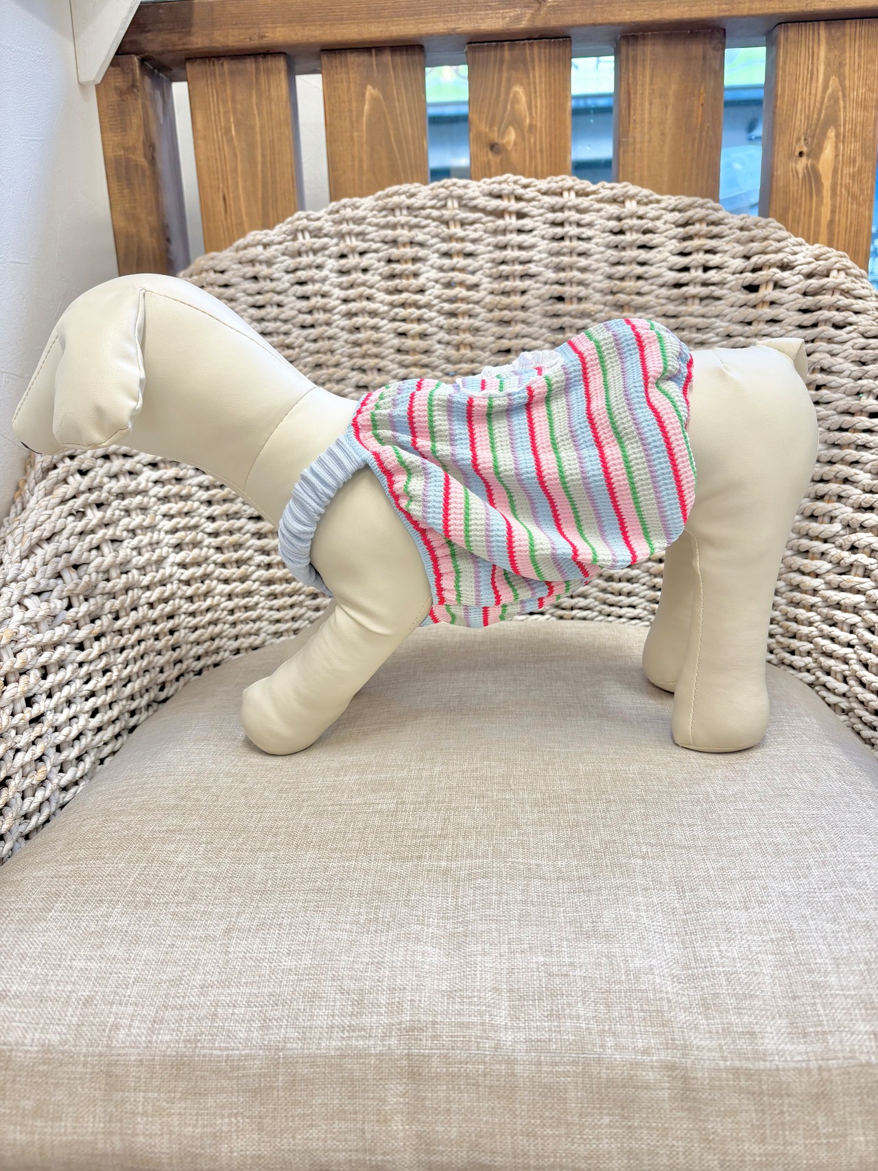 もちっとしたスパンデックスが入ったワッフル生地で体にくっつかないのでわんちゃんも快適です。