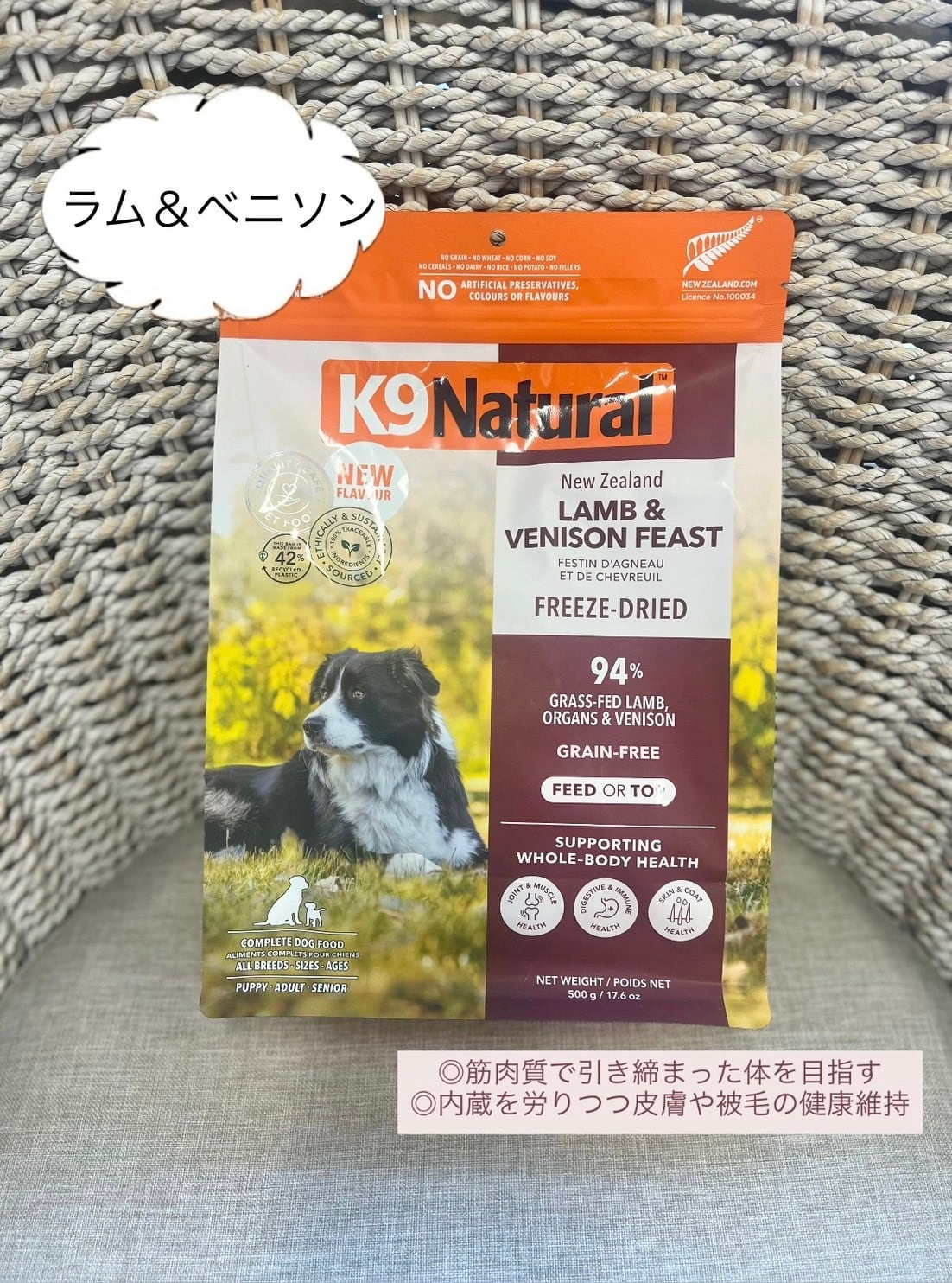 【✨2袋以上のご購入で送料無料✨】K9 Natural フリーズドライドッグフード ラム&ベニソン500g