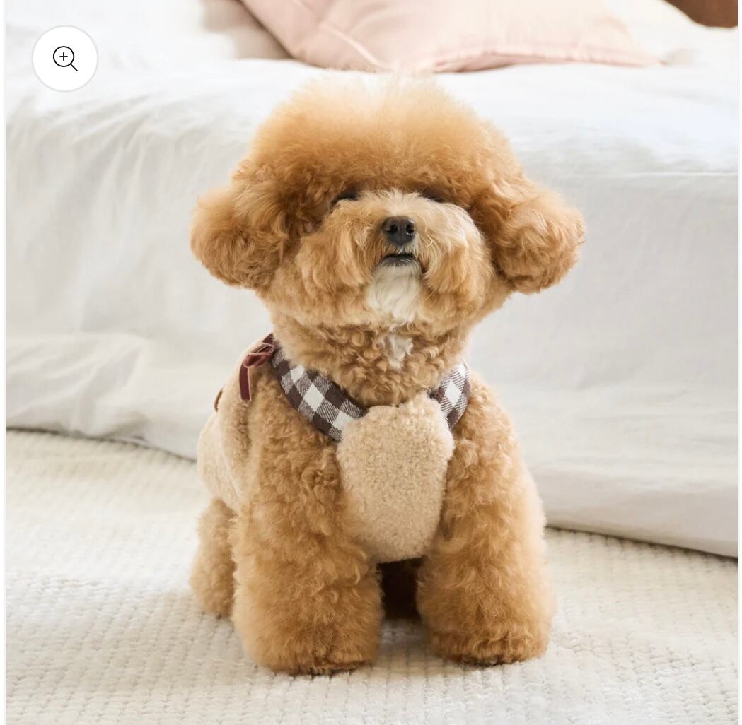 可愛いベアポケットと華やかなチェックの肩紐がポイントのクロップベストです!