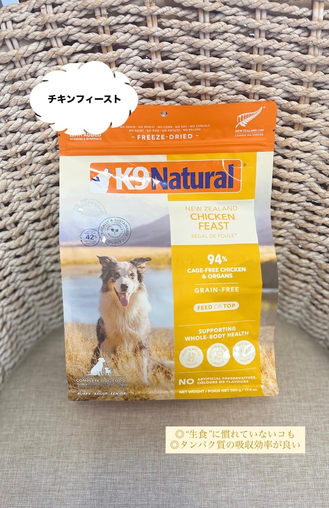 【人気No.1】【✨2袋以上の購入で送料無料✨】[リニューアル商品]K9 Natural フリーズドライドッグフード チキンフィースト500g